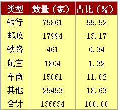 截至2008年12月底,全国共有保险兼业代理机构136634家,比上季度末减少2999家,减少类型主要是邮政类和车商类机构,分别比上季度减少了1412家和2385家。