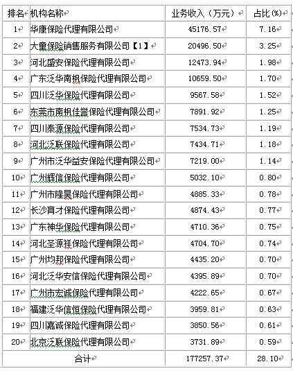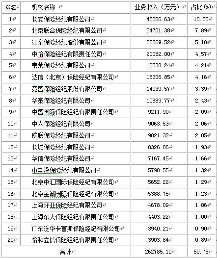 截至2010年底,保险专业中介机构实现业务收入118.40亿元,同比增长32.69%;实现净利润8.15亿元,同比增长71.94%。