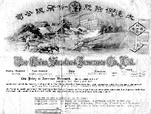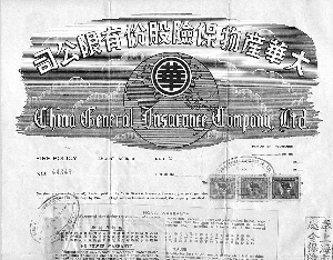 图例:大华产物保险公司火灾保险单贴新中国第一套“旗球图”印花税票(1950年7月11日)