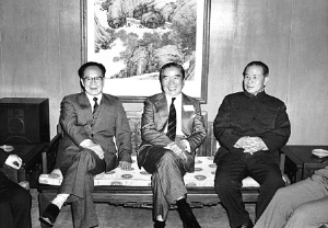 1984年,国务院宁波经济开发区协调小组组长谷牧(左)、顾问包玉刚(中)和卢绪章(右)在一起。