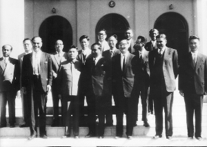 上世纪60年代初,五矿总公司经理谢寿天(左六),随同时任外贸部副部长林海云(左五)出国访问。
